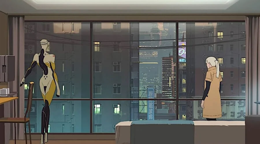 Following Aline Ruby (voiced by French talent Léa Drucker), a Chinatown-esque private eye obsessed by the attempted murder of Jun Chow, who was really the target of the assassin that eliminated that poor student earlier in the film, we discover a bleak future where androids are the last specie to be enslaved by humankind. Shunned by society, treated as freaks, they are forced to tend to every human needs and desires, even and – of course – the darker ones.