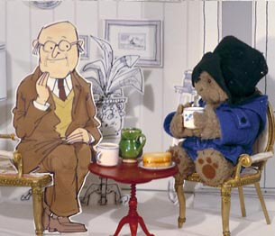 The animated BBC series Paddington was first broadcast in 1975 and was animated and directed by Ivor Wood (The Magic Round About, Postman Pat, Bertha). The series had an extremely distinctive appearance. Paddington was a stop-motion puppet moving in a three dimensional space in front of two-dimensional backgrounds (which were frequently sparse black-and-white line drawings), while all other characters were 2D drawings. This was most likely due to time constraints and small budgets however it gave the series a certain charm that made it stand out from other animations of the time.