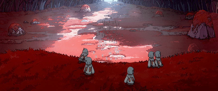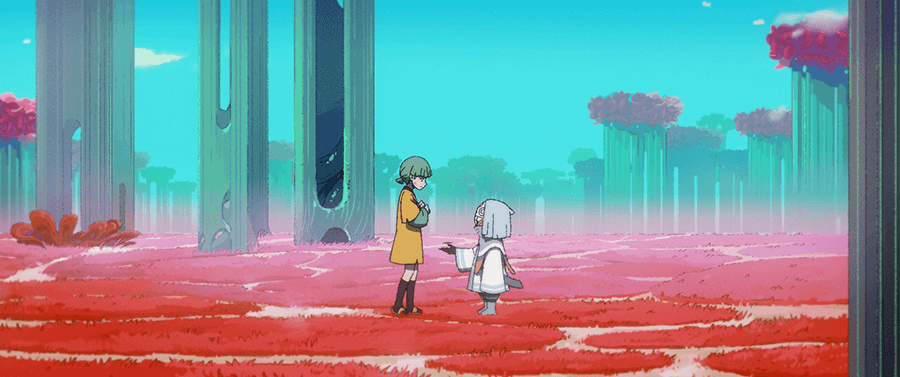 In terms of color, we wanted to create a world that would clearly stand apart from reality. For example, we chose red for the plants because it is a relatively uncommon color for vegetation, so the moment you see it, you can immediately tell whether you are in the human world or in “another world.” Moreover, “another world” is filled with plants, and that environment is both dazzling and serene, giving you a deep sense of peace.