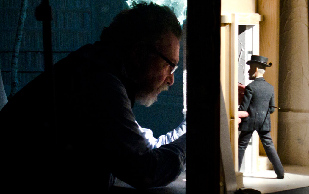 When Barry Purves gave a talk to the audience gathered in Halifax for Creative Calderdale (Part One of “Barry Purves – Respect the Puppets!” can be found here), he began explaining the nature of working with puppets, particularly how their rigid physicality can sometimes add creative complications when a character simply cannot get in the pose as planned in the storyboard. This caused him to explain how he would have to spontaneously adjust the puppet in a way that both accomplished the intended performance as well as worked for the puppet. He said that you cannot force a puppet to do what it does not want to do. He began repeating, “Respect the Puppets! Respect the Puppets! You must respect the puppets”. Not only does Barry Purves have great respect for the art form, but also he displays respect when he is animating a puppet. This is certainly the case with the second of Purves latest work we are highlighting “Tchaikovsky – An Elegy”