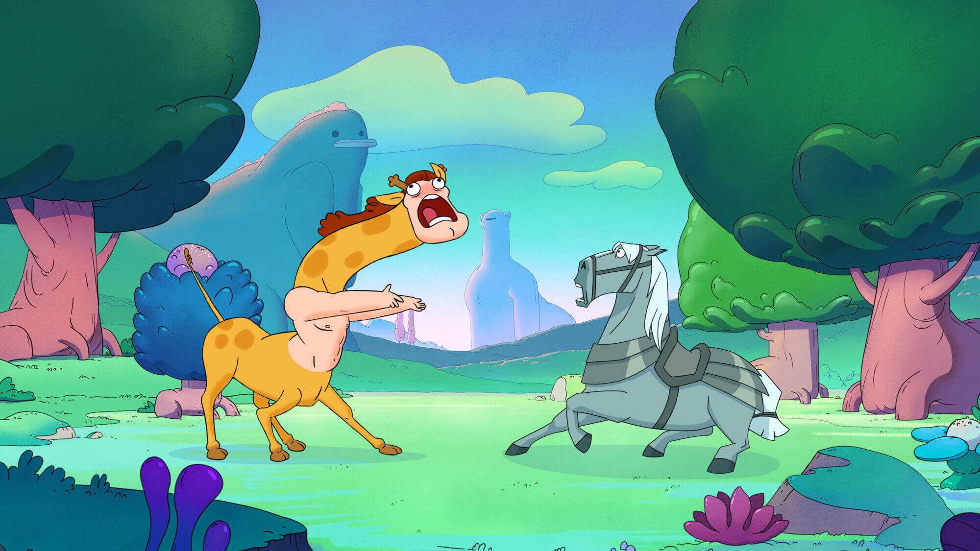 - CENTAURWORLD Season 1 (L to R) JESSIE MUELLER as RIDER and KIMIKO GLENN as HORSE in episode 1 of CENTAURWORLD Season 1. Cr. COURTESY OF NETFLIX © 2021