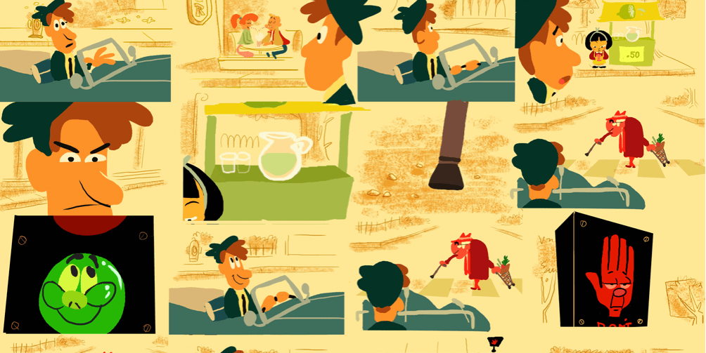 We were too far ahead to back out and we didn’t want to, so we began thinking on how we could extend the short. Animation was not an option because of the budget and deadline, after a couple of days M.R. remembered something he once told J.M. while they were in Toronto, He said: ¨Maybe one day you will be like the Latin American Walt Disney¨ and he came up with this idea of making a live action intro just like the ones Disney used to make. At first it sounded a little crazy but then we saw the perfect opportunity to experiment with live action. I was able to go back to my live action days and directed that segment, we worked for almost two months to find the perfect location, the props and the clothes, we worked with an amazing cinematographer Luis Otero who was able to nail the look and feel and we shot the whole thing in a 35MM 1970’s Arri BL4 which made the whole thing look legit and the final result was amazing. Sometimes when we show the short and J.M. is in the room people don’t recognize him and some times people think we took the footage from an old industrial film or even a Disney movie and we love that because it means we did it right.