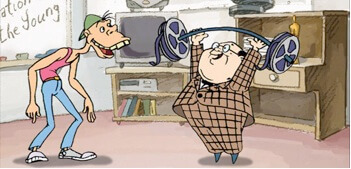 We bought the cartoon characters from Bill Plympton. Constantine Bronzit, genius animator, was the lead animator on the project. Bill Plympton also animated the last 30 seconds of animation, the part when he turns from a stupid man to a clever human being. We realised that something was missing towards the end of production so we found it easier to ask Bill and his studio to make it.