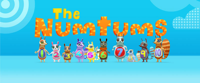 Numtums is a 25×5 minute series we created for CBeebies at Beakus and is currently broadcast twice a day as part of CBeebies’s “Love to Learn” cluster of shows. It’s a show about numbers, introducing pre-school kids to fun that can be had with counting objects and drawing numbers from 1-10. Every number is embodied by one of a group of numtums, very playful creatures who are modelled on numbats, an Australian marsupial. Each numbat has its own distinct personality and, as nature would have it, the amount of stripes on each numtums tail is the same as the number on its tummy.
