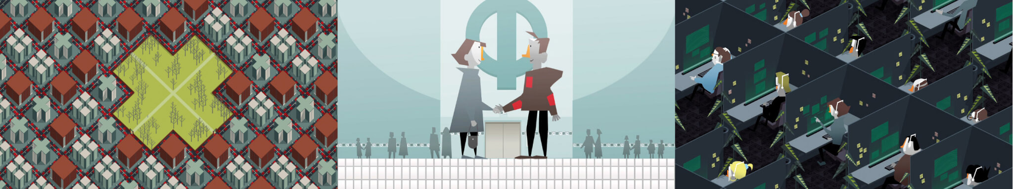 I hope it was a bit of both. I like working with a clear colour-palette. I always start with a schehme of coloured squares which then turn into characters and backgrounds. When you develop such a large amount of characters and episodes it helps to be quite methodical with the design process. The backgrounds of the numtum world had to be quite abstract and non-descriptive, so they wouldn’t distract from the exercises in the foreground. But we also wanted a consistent setting and continuity throughout the episodes, so I eventually created a selection of background shapes which provided a graphic stage for the action.