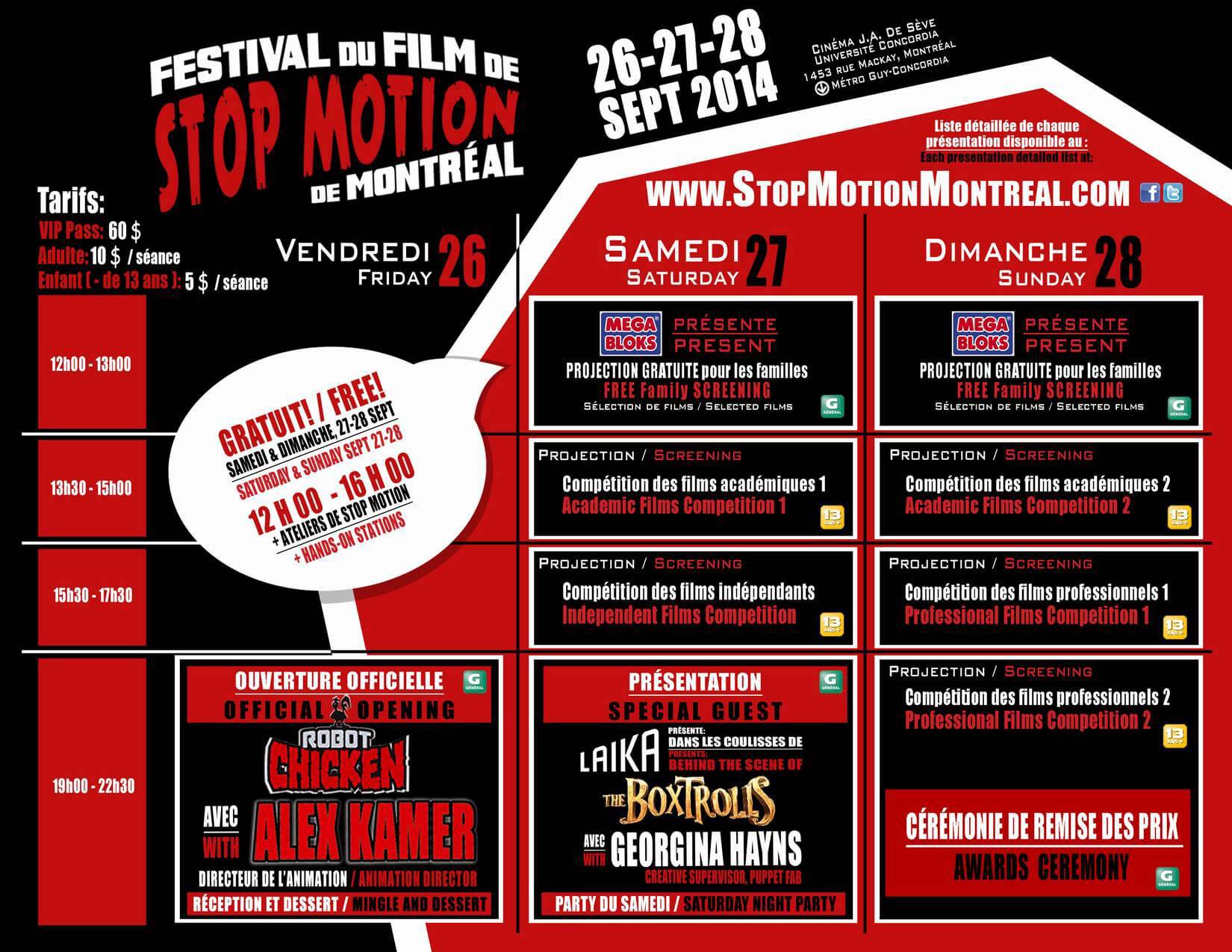 The sixth edition of the Montreal Stop Motion Film Festival is proud to announce the release of its official program for 2014. This year, the Festival will be taking place on September 26th, 27th, and 28th in the J.A. de Sève Theater at Concordia University (1453 Mackay Street, Montreal).