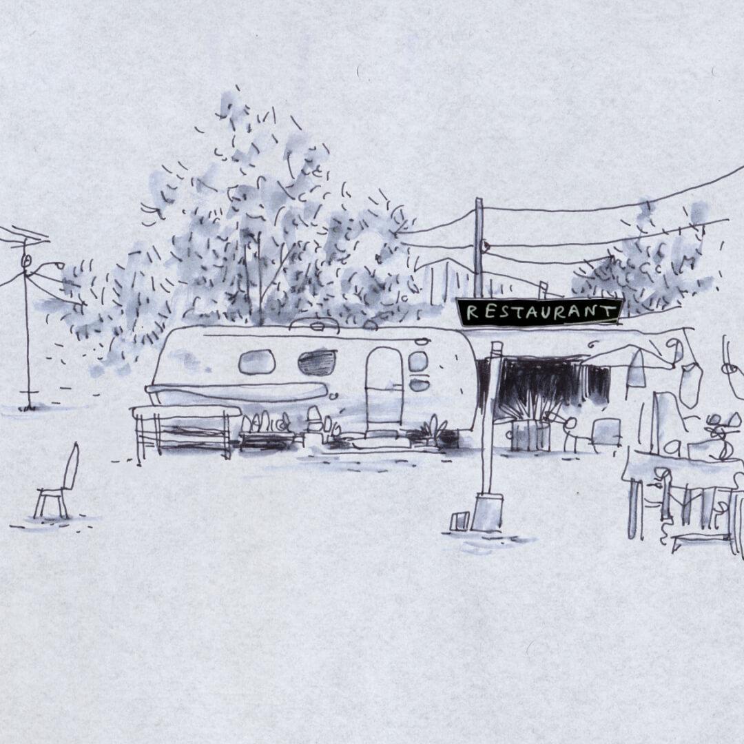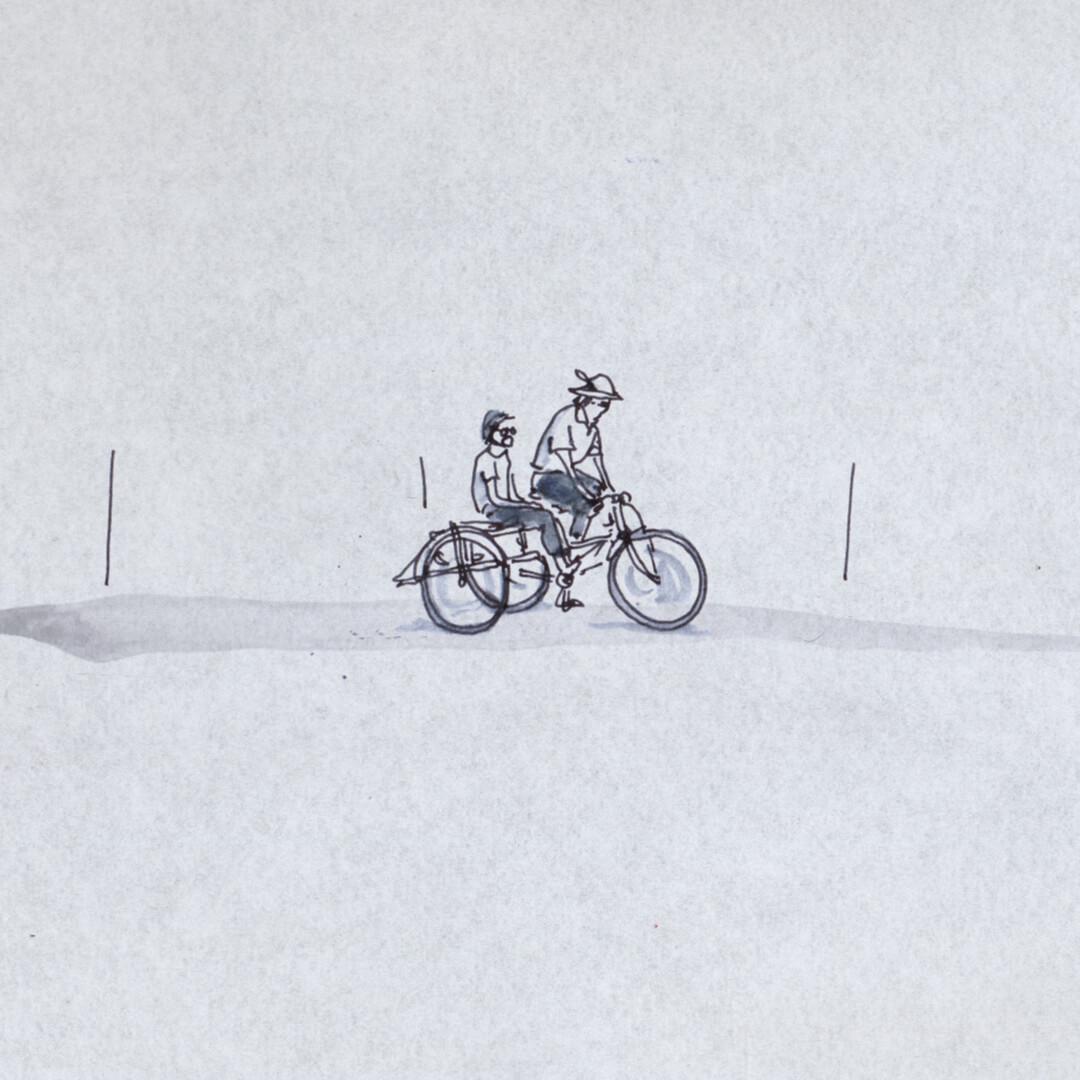 Back home, after the trip, Greg worked with Myles on taking his raw materials – photos, audio snippets, interviews, video footage – and turning it into a film. Myles wrote a poem to act as a story spine while Greg experimented with different visual styles. Thanks to Greg’s ongoing myinkyhead project (check it out on Instagram) they settled on an ink and watercolour style. The style is loose and alive. There is a lot of black and white, but also moments of colour (watercolour and ink)..